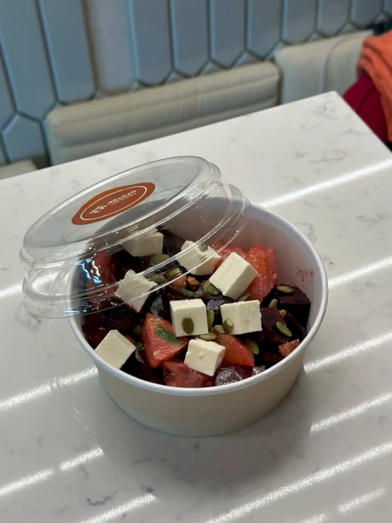 Вареная свекла, тыква, спелый инжир, апельсины, брынза фетаки, грецкие орехи, авторский соус.